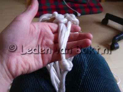 Dit doe je dus acht keer, zorg er wel voor dat de knopen allemaal